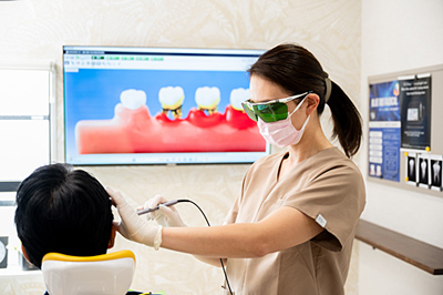 波長や出力を調整することで、虫歯を従来より少ない痛みで削ったり、歯周病菌を殺菌したり、