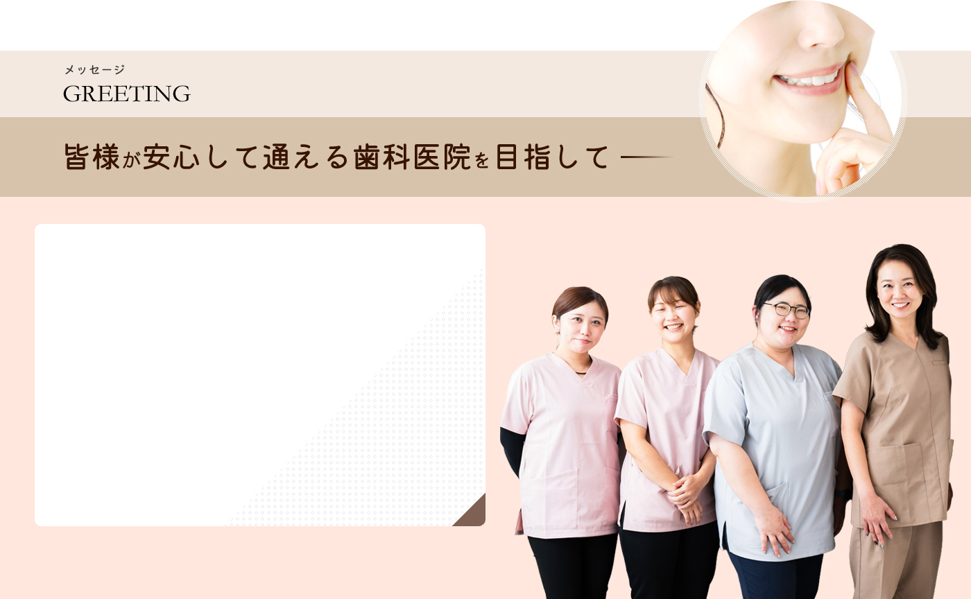 地域の皆様に信頼され、安心して通っていただける歯科医院を