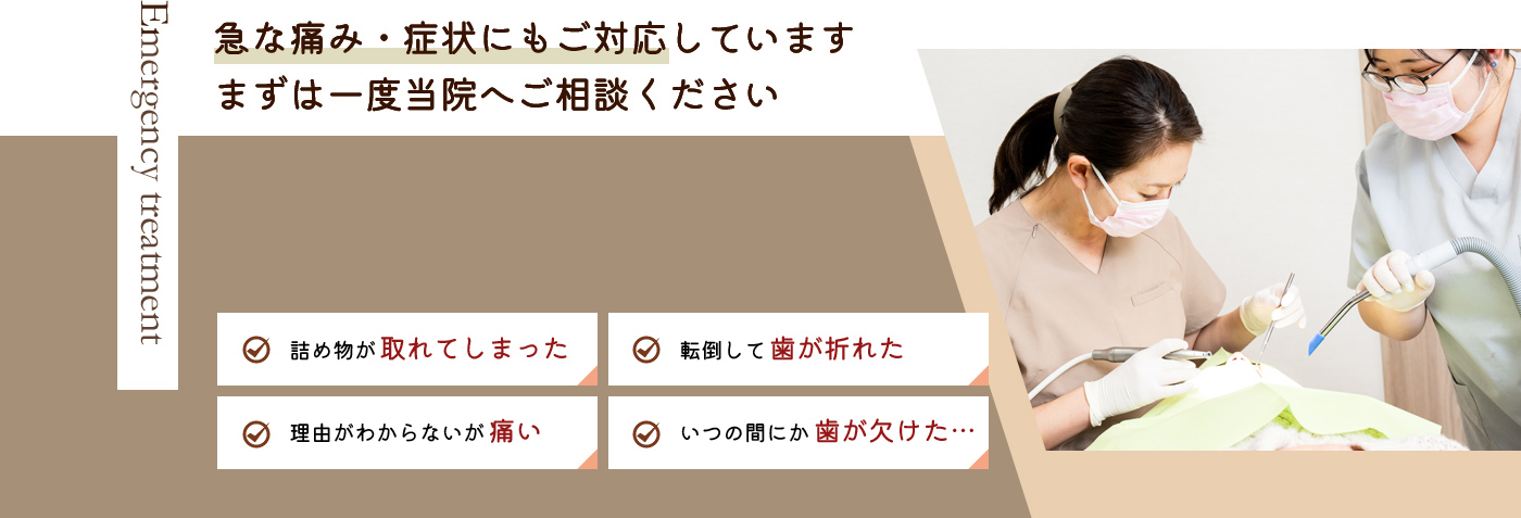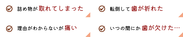 急に痛みが出た、歯が折れた等 まずはご連絡下さい。